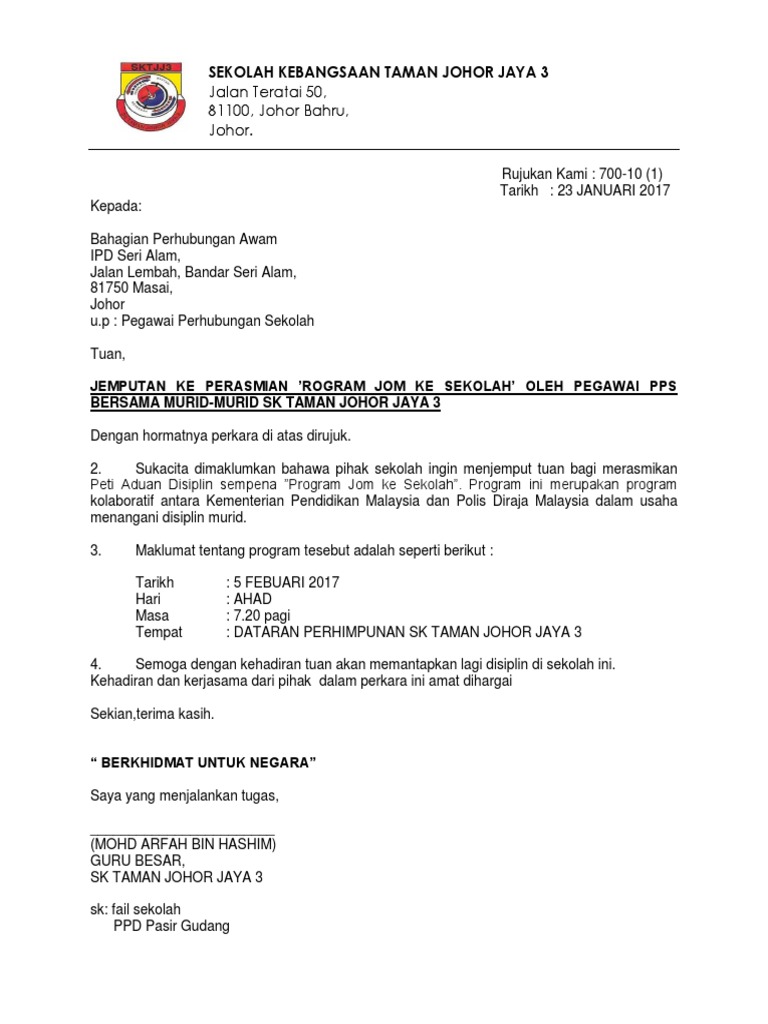 Surat Jemputan Program Jom Ke Sekolah Skpm Polis
